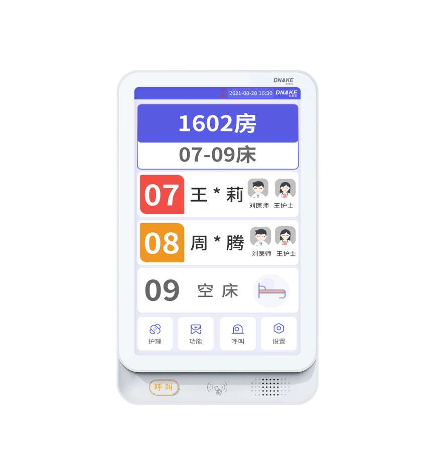 創(chuàng)新設(shè)置在病房門(mén)口的終端設(shè)備,主要用于顯示病房相關(guān)信息,內(nèi)置簡(jiǎn)易醫(yī)護(hù)工作站,支持病房床位一覽、患者動(dòng)態(tài)跟蹤、呼叫對(duì)講、增援求救等多種呼叫類型,信息齊全,及時(shí)響應(yīng)醫(yī)護(hù)需求,實(shí)現(xiàn)智能化醫(yī)護(hù)管理。
