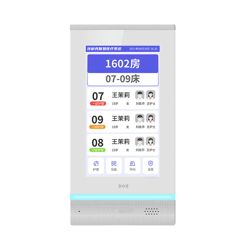 設(shè)置在病房門口的終端設(shè)備,主要用于顯示病房相關(guān)信息,內(nèi)置簡易醫(yī)護工作站,支持病房床位一覽、患者動態(tài)跟蹤、呼叫對講、增援求救等多種呼叫類型,信息齊全,及時響應(yīng)醫(yī)護需求,實現(xiàn)智能化醫(yī)護管理。